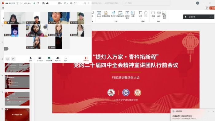 為深入學習貫徹黨的二十屆四中全會精神,引導青年學子將專業所長與社會需求緊密結合,2026年1月18日,山東大學護理康復學院“提燈入萬家,青衿拓新程”黨的二十屆四中全會精神宣講團隊在行前動員會議上正式吹響寒假社會實踐的號角。團隊隊長趙欣堉主持會議并部署相關工作,全體隊員以飽滿熱情參會,共同為即將開展的基層實踐活動筑牢根基。