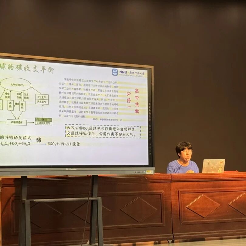 首先,施嘉旺以綠色可持續(xù)發(fā)展與高中課本上生物化學(xué)知識以及一些生活場景為著力點,指出自然界的碳循環(huán)依賴呼吸作用與光合作用維持平衡,食品生產(chǎn)過程可依據(jù)這些生物化學(xué)原理實現(xiàn)低碳,食物包裝升級、廢棄食物處理等也是實現(xiàn)碳收支平衡的關(guān)鍵環(huán)節(jié)。然后詳細介紹了食品大健康理念與碳中和食品,并通過三種實現(xiàn)食品碳中和的具體應(yīng)用,包括腐殖酸可增加土壤有機碳含量、替代化肥減少碳排放,PLA - 聚乳酸酯以及微藻的應(yīng)用,講述了助力碳中和的多種方式。最后通過榜樣的力量,傳遞以邢沁澮博士和黃和院士等科研工作者為代表的科研故事,激勵高中生弘揚和踐行科學(xué)家精神,厚植愛國主義情懷,為綠色可持續(xù)發(fā)展貢獻力量。
