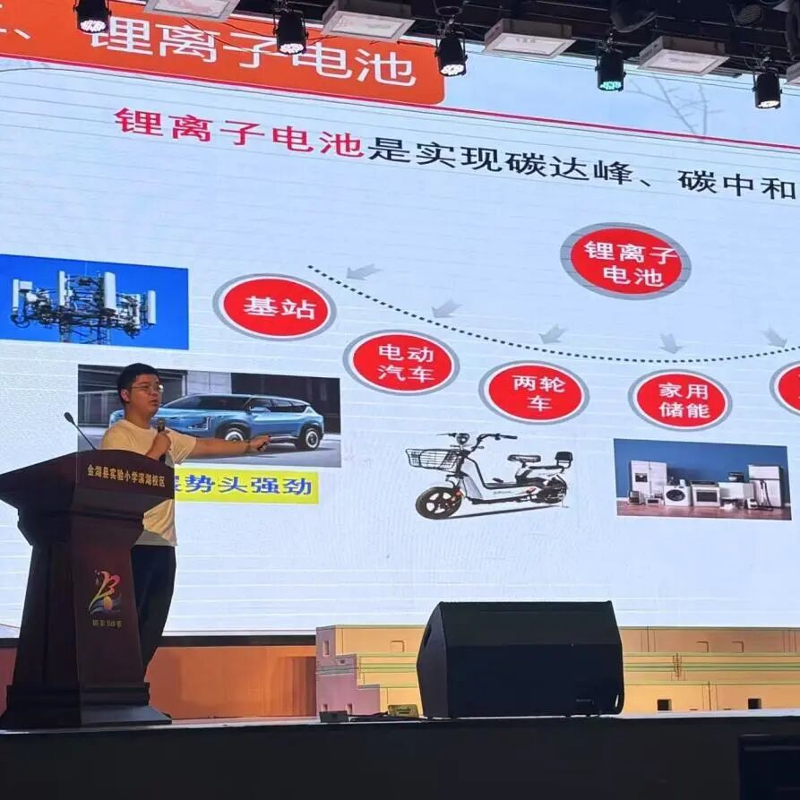 劉啟成老師以“雙碳”戰(zhàn)略背景為著力點,先后介紹了以鋰電、鉀電、鈉電、燃料電池、半燃料電池等主流商業(yè)化新型動力電池器件。目前,鋰離子電池雖為碳中和關(guān)鍵技術(shù),但面臨全球90%鋰資源依賴進口的嚴峻挑戰(zhàn)。劉啟成老師指出,中國碳酸鋰需求量持續(xù)攀升,亟需開發(fā)替代方案:鈉/鉀離子電池憑借資源豐富性成為戰(zhàn)略選擇,其中鉀電池因更易實現(xiàn)高能量密度,在儲能領(lǐng)域潛力顯著,技術(shù)突破需聚焦電極材料優(yōu)化與電解質(zhì)改進,以提升循環(huán)穩(wěn)定性及低溫適應(yīng)性。隨后,劉啟成老師以高中化學(xué)氧化還原反應(yīng)知識板塊為切入點,詳細解析了氫氧燃料電池、直接液體燃料電池和鋅—空氣電池的反應(yīng)原理和工作模式,并通過現(xiàn)階段的最新研究進展,為同學(xué)們介紹了科研思維和國際先進技術(shù)。