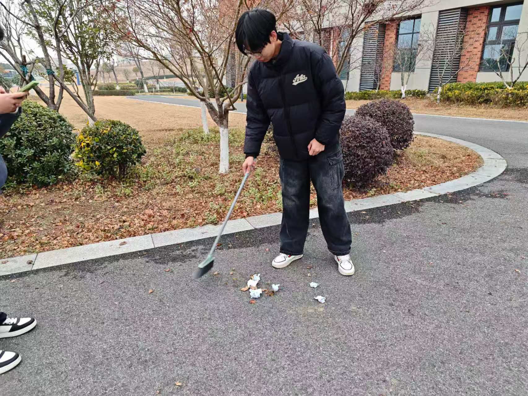 活動(dòng)期間,團(tuán)支部的青年學(xué)子們主動(dòng)對(duì)接社區(qū)工作人員,明確服務(wù)需求與工作分工后,迅速投入到社區(qū)服務(wù)工作中。手持掃帚、抹布、夾子等清潔工具,志愿者們的身影穿梭在社區(qū)的各個(gè)角落,重點(diǎn)對(duì)社區(qū)公共道路、樓道走廊、休閑廣場(chǎng)等區(qū)域進(jìn)行全面清掃,認(rèn)真清理路面垃圾、樓道雜物與衛(wèi)生死角,不放過(guò)任何一處細(xì)節(jié)。盡管冬日寒風(fēng)凜冽,但同學(xué)們的服務(wù)熱情絲毫未減,分工協(xié)作、相互配合,在勞動(dòng)中揮灑青春汗水,用雙手為社區(qū)居民打造干凈、整潔、舒適的生活環(huán)境。