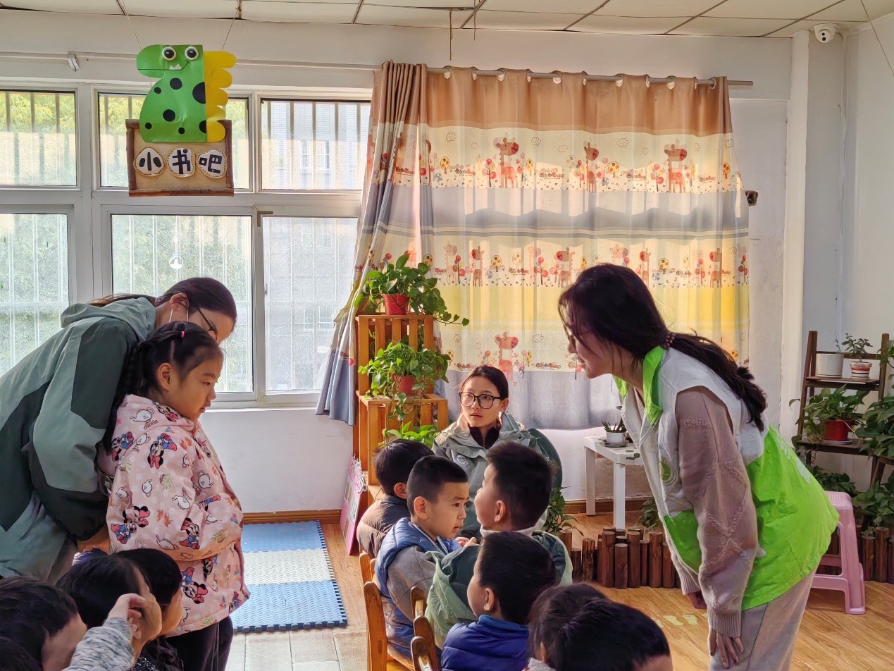 圖為志愿者引導幼兒園孩子發(fā)問。張婉涵 供圖
