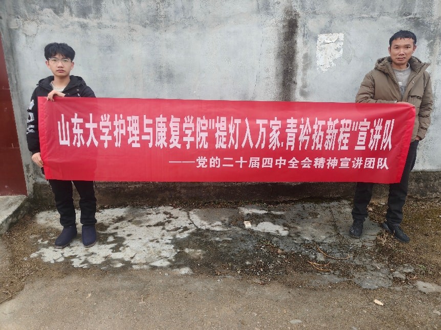 為深入學(xué)習(xí)宣傳貫徹黨的二十屆四中全會精神,推動全會精神在基層落地生根、見行見效,2026年1月28日,山東大學(xué)護(hù)理與康復(fù)學(xué)院“提燈入萬家,青衿拓新程”宣講隊(duì)隊(duì)員王明萱走進(jìn)王西莊村,開展理論宣講下基層活動,以護(hù)理專業(yè)青年的責(zé)任擔(dān)當(dāng),推動黨的創(chuàng)新理論走進(jìn)鄉(xiāng)村、深入民心。