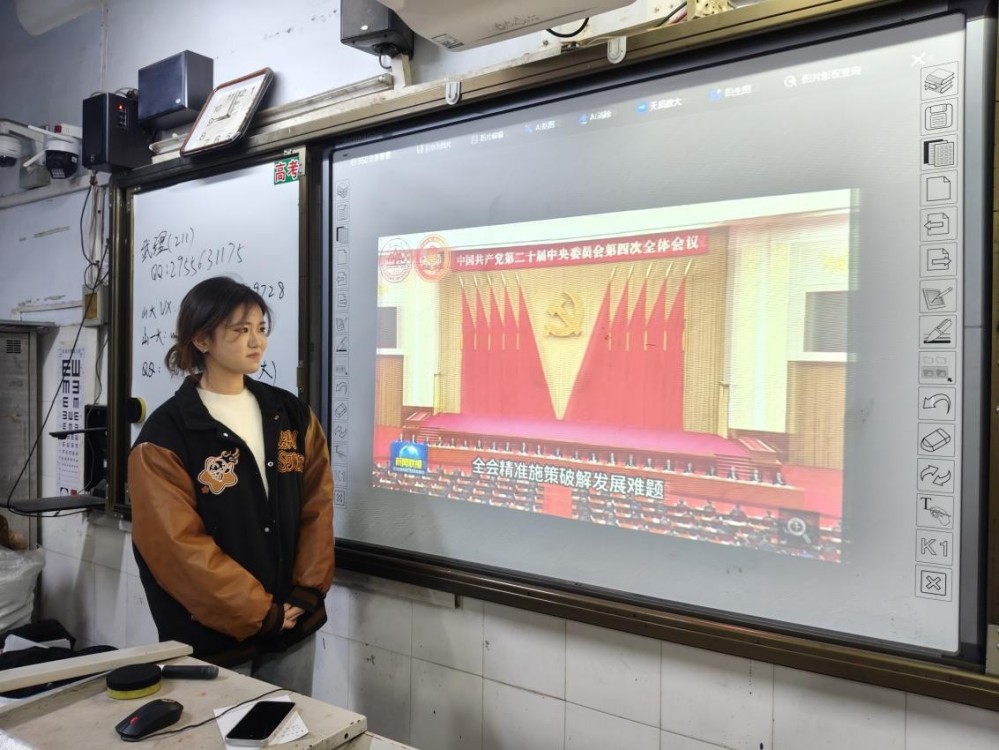 宣講現場,教室里座無虛席,高三十班的同學們身著整齊的校服,目光專注而熱切。宋爽司琪緊扣二十屆四中全會關于“推進教育現代化、強化青年思想引領、健全青年發展支持體系”等重要部署,結合高中生的學習生活實際與成長需求,將理論政策與青春視角有機結合。她們以通俗易懂的語言、鮮活生動的案例,把全會精神轉化為貼近青年、鼓舞青年的“青春話語”,精準解讀全會提出的新思想、新論斷、新部署,讓同學們清晰認識到國家發展戰略與個人成長成才的緊密聯系。