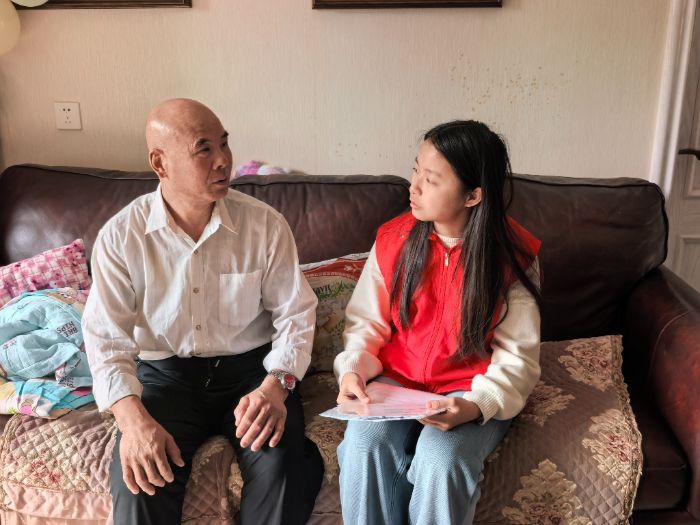 活動當(dāng)天,團(tuán)隊分為兩組開展一對一深度訪談。一組隊員與老年人面對面交流,細(xì)致了解其在智能掛號、醫(yī)保查詢、就醫(yī)流程理解等環(huán)節(jié)遇到的具體阻礙,記錄下他們對數(shù)字化就醫(yī)工具的使用困惑與實(shí)際訴求。另一組隊員則與老年人子女進(jìn)行訪談,重點(diǎn)收集其在協(xié)助父母就醫(yī)過程中遇到的操作難點(diǎn)、擔(dān)憂的風(fēng)險隱患,以及對醫(yī)保政策的認(rèn)知盲區(qū),系統(tǒng)梳理出家庭在老年就醫(yī)場景中的共性痛點(diǎn)。