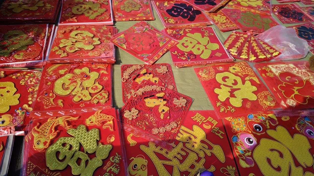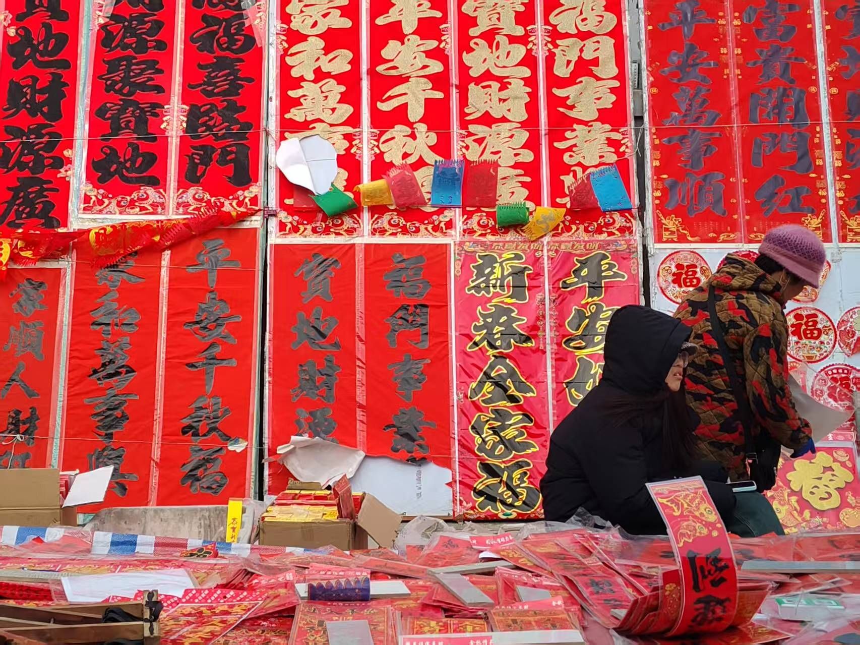 臘月廿六,正值年關,濱州陽信的黃河大集上,滿目中國紅在冬日暖陽的映照下格外鮮明。春聯、福字、中國結等節慶飾品琳瑯滿目,而最具魯北地域特色的,當屬那一張張迎風搖曳的過門箋。它們如紅色風鈴般懸掛于攤位之間,無聲地奏響了春節的序曲。