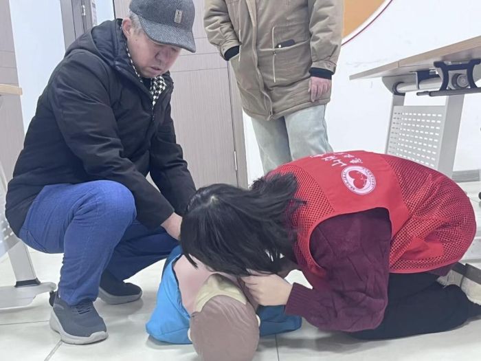 緊接著,團隊成員采用理論講解與模擬演示相結(jié)合的方式,借助模擬人教具,分步演示心肺復蘇判斷流程、呼救方法、體位調(diào)整技巧以及胸外按壓與人工呼吸規(guī)范動作。在海姆立克急救法教學環(huán)節(jié),成員們細致區(qū)分部分梗阻與完全梗阻不同表現(xiàn),演示針對老年人的背部叩擊法與腹部沖擊法。現(xiàn)場居民認真觀看演示,多位老人在志愿者指導下進行實操練習,在互動中初步掌握關(guān)鍵要領(lǐng)。