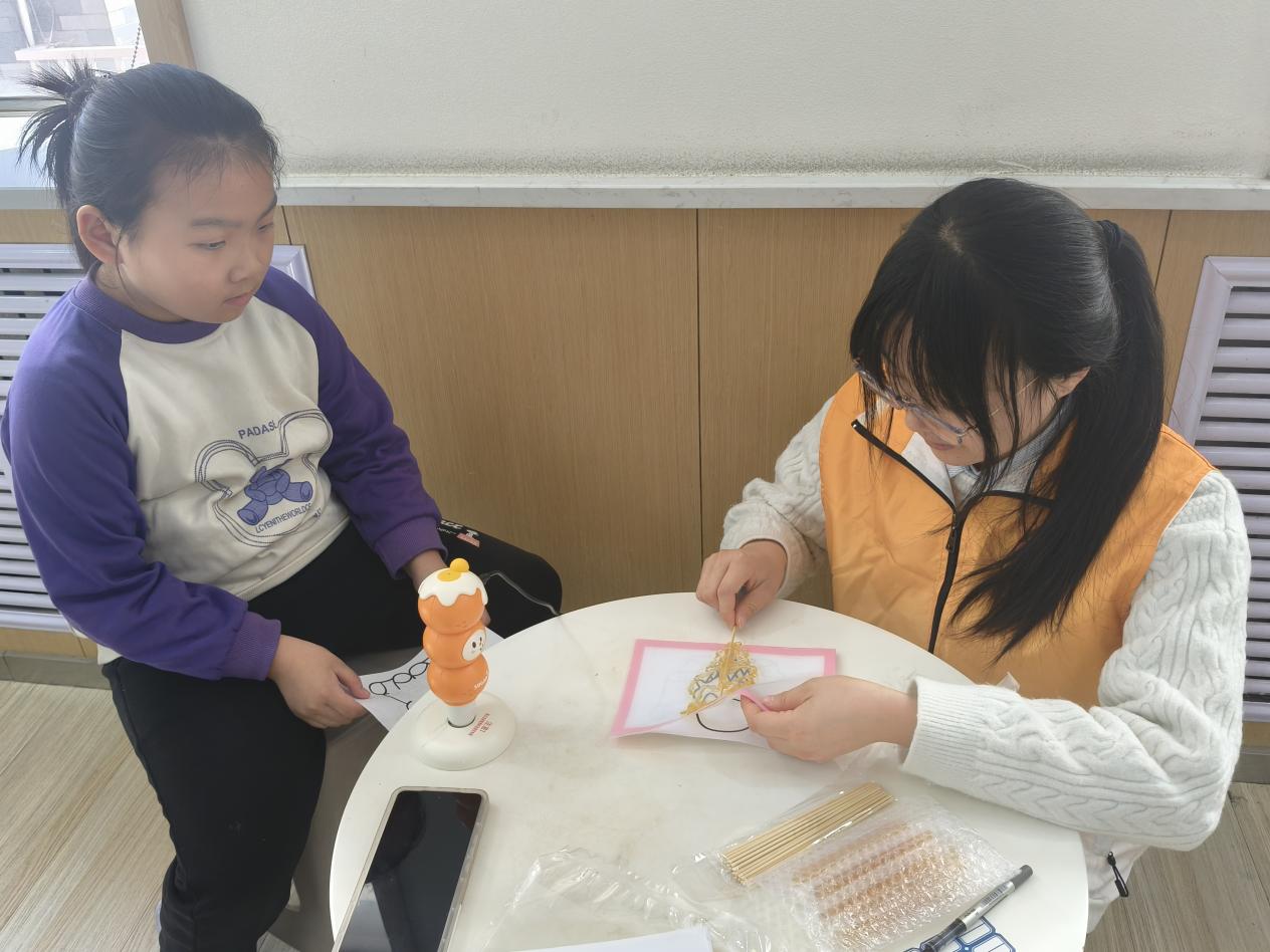 下午三點,濟南市歷下區東關街道社會工作服務站劉老師為同學們帶來非遺糖畫制作體驗。劉老師向孩子們介紹了糖畫的歷史淵源與制作工藝,并現場示范繪制步驟。隨后,小朋友們在志愿者的耐心協助下,手持熱熔工具,按照圖紙細心描繪,完成了各具特色的糖畫作品。通過親手體驗傳統技藝,孩子們在實踐中感受到非物質文化遺產的獨特魅力,也在心中播下傳承中華優秀傳統文化的種子。