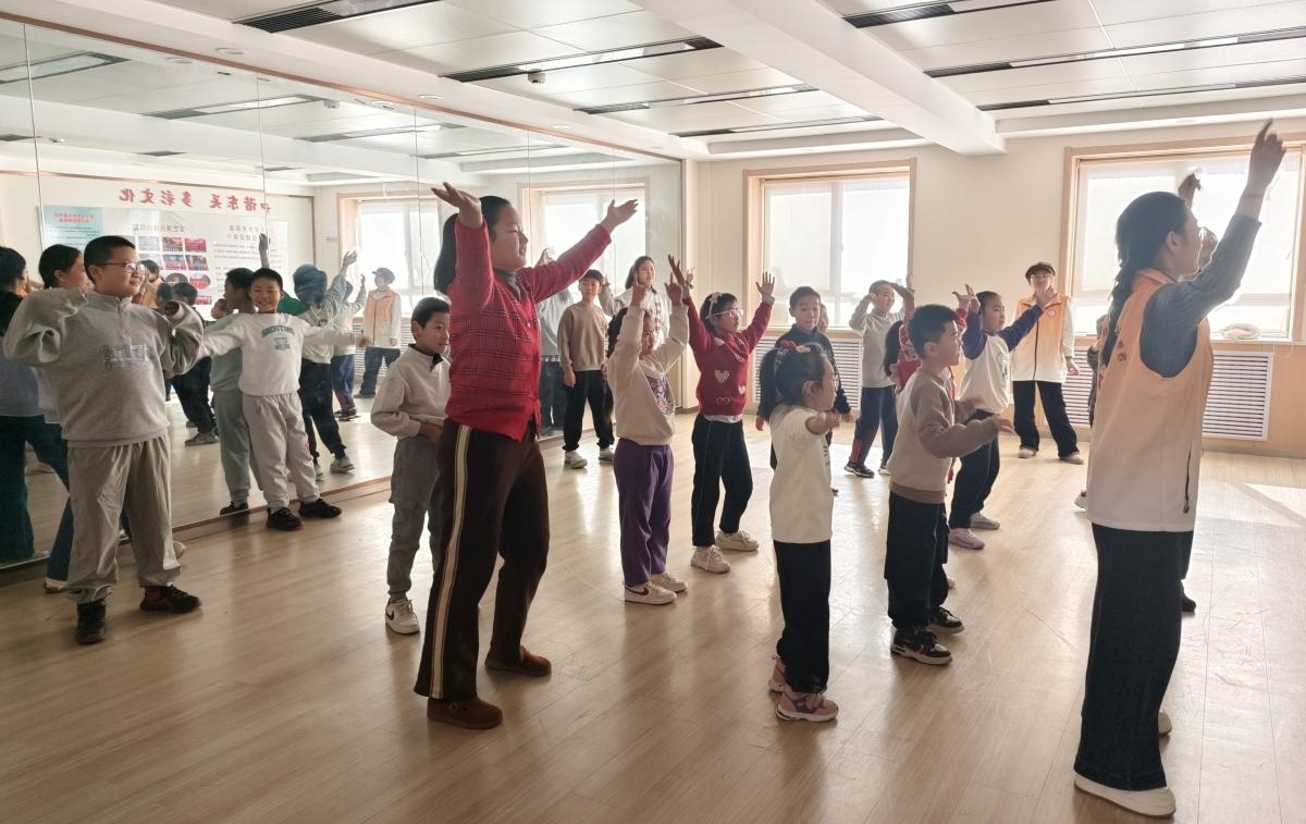 在課間休息時間,為幫助孩子們放松身心、增強體質,志愿者們精心組織了集體舞蹈活動。伴隨著輕快的音樂,孩子們在志愿者的帶領下舒展身體、盡情舞動。動靜結合的課程安排,讓孩子們在學習之余得到充分的休息與鍛煉,實現了身心的全面發展。