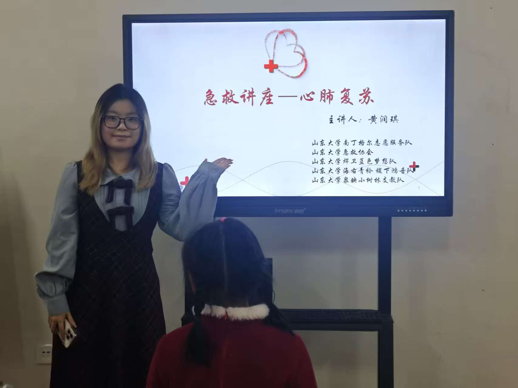 科普急救技能,守護生命安康。作為南丁格爾志愿服務隊成員,黃潤琪充分發(fā)揮專業(yè)特長,為孩子們帶來心肺復蘇急救知識課堂。她用通俗易懂的語言講解急救步驟,現(xiàn)場演示胸外按壓的位置、力度與頻率,分步示范判斷意識、及時呼救、規(guī)范操作的流程。孩子們認真觀看、積極參與,在互動實踐中掌握關(guān)鍵急救方法,心中種下尊重生命、關(guān)愛他人的種子。