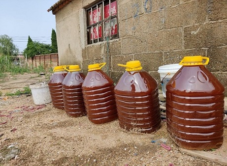 養(yǎng)殖場老板告訴實踐團隊,每年二三月份,投放蟶子,清明前后投放東方對蝦,四月底五月初投放梭子蟹,水中的梭魚是給養(yǎng)殖場注水從海水中帶來的。由于當?shù)貨]有大規(guī)模的養(yǎng)殖基地,基本都是中小型養(yǎng)殖戶,因此對于海水中的微量元素指標也并沒有很嚴格的要求。在養(yǎng)殖場老板的介紹下,只有兩種藥劑用于改善水質(zhì),來規(guī)范微量元素值的范圍。當天氣不好,或者下雨的時候,水會變渾濁,這是不利于蝦蟹生長的,甚至會導致其死亡。這時就會往水中加入EM菌,用于改善水質(zhì)。老板還告訴實踐團隊EM菌在陽光暴曬后發(fā)酵,效果會加倍。