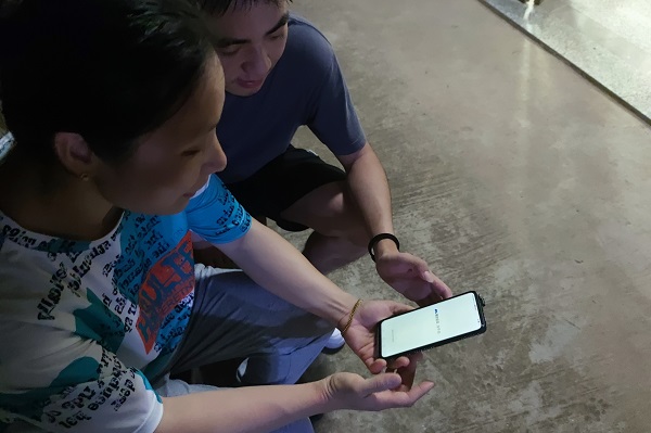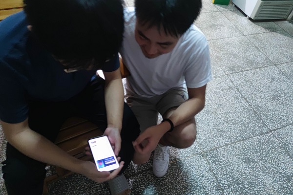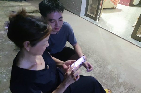 圖為村民詢問實踐隊員該如何下載國家反詐中心APP,實踐隊員正在幫村民下載。中國青年網通訊員 胡程 攝