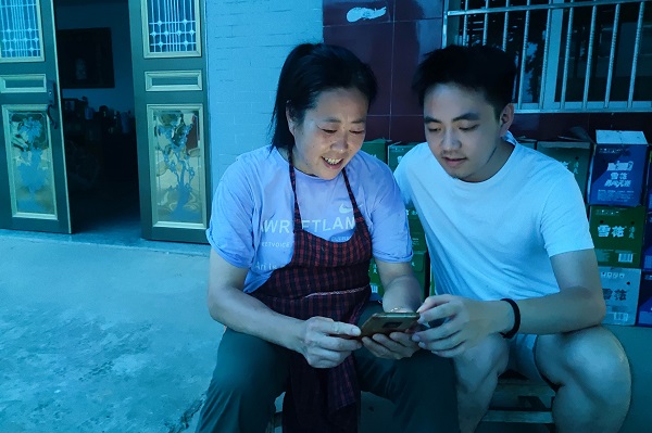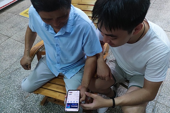 圖為實踐隊員幫助村民注冊國家反詐中心APP。中國青年網通訊員 胡程 攝