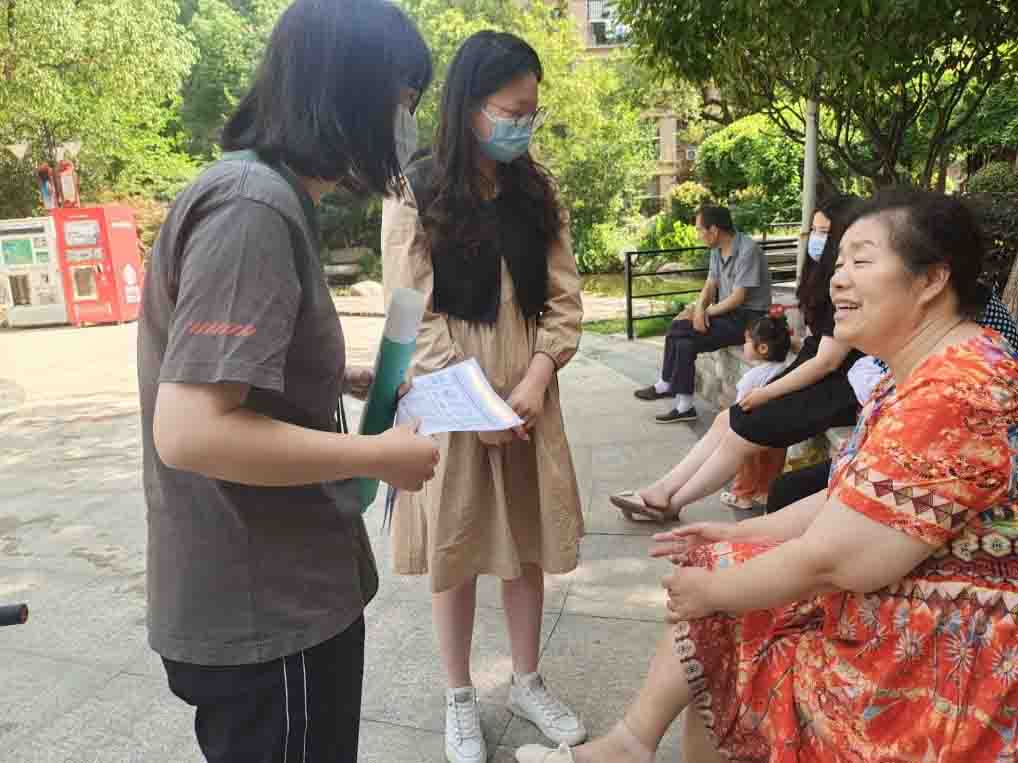 6月16日到17日,實踐小隊調研的對象為較高年齡的人群。圖中的一位女士便是其中一位。在采訪中,這位女士表示自己對垃圾分類的了解程度并不高,平時并沒有垃圾分類的習慣。實踐小隊成員首先介紹垃圾分類的相關知識,之后實踐小隊成員向這位居民提了幾個相關問題,這位居民的回答完全正確,并且表示今后會認真對待垃圾分類這件事。