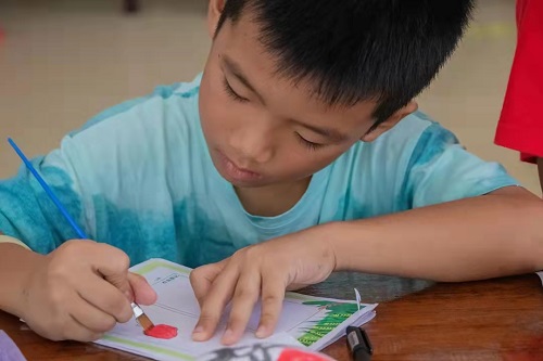 荔枝果殼平薄鮮紅,紋理雅致,剝開果殼,晶瑩碧透的果肉鮮嫩多汁,香氣清遠(yuǎn)。課程接近尾聲,主講員采取積分獎勵的形式,鼓勵學(xué)生在本子上描繪荔枝的形狀,增強(qiáng)課堂的互動性,提高學(xué)生的課堂參與感。學(xué)生拿起手中的畫筆輕輕勾勒出略顯青澀的線條,再涂上鮮紅的顏色,一顆顆逼真的荔枝便躍然紙上。至此,本次“犀荔故事”——增城荔韻故事分享會結(jié)束,主講員“蓮霧姐姐”鼓勵同學(xué)們在課后更進(jìn)一步了解增城荔枝,發(fā)掘荔枝中傳承千年的嶺南飲食文化,綻放“美荔時代”的獨(dú)特光彩。