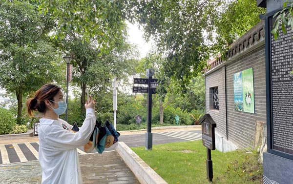 (圖為實踐團實地考察蒲津公園標牌設置情況 龔睿韜 攝)