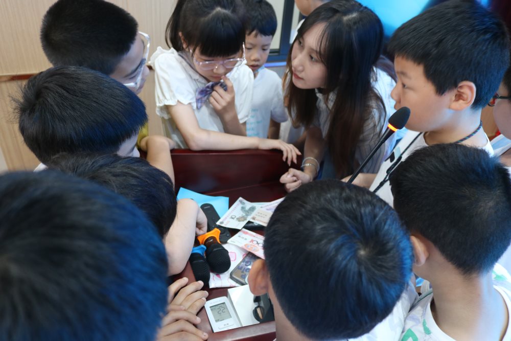 圖為志愿者老師在給小朋友們講解貨幣知識。中國青年網(wǎng)通訊員 任雁飛 攝