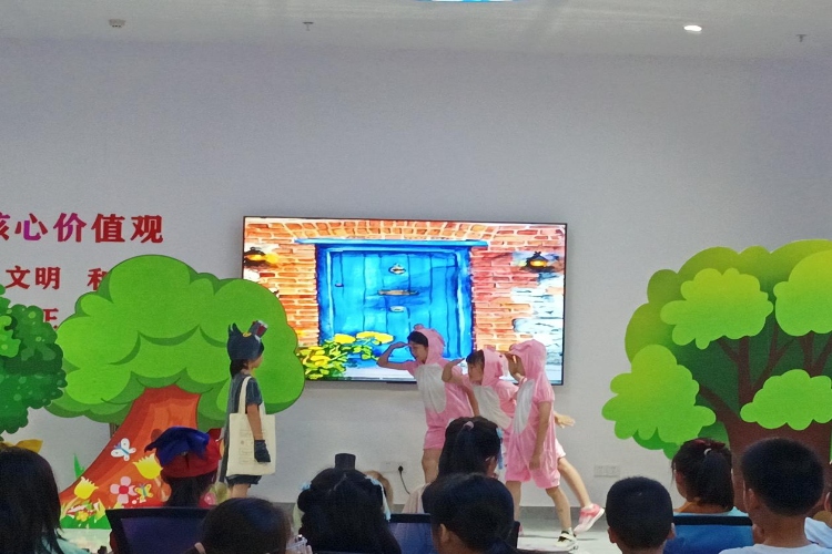 晚間,志愿者們觀看了小朋友們精心準(zhǔn)備的英文版舞臺劇《三只小豬》《農(nóng)夫與金魚》。孩子們流利的英文,機智的表現(xiàn),讓義工們贊不絕口。經(jīng)過這段時間的刻苦訓(xùn)練,小朋友們不但英語水平得到提高,更在個性上得到發(fā)展。“漁民的情感是如此的動人”、“小豬的笑容真自然”,讓志愿者們由衷的稱贊了小朋友們的自信、感染力和表達(dá)能力。這也讓這些志愿者對steam基地的培訓(xùn)模式有了更多的信心。