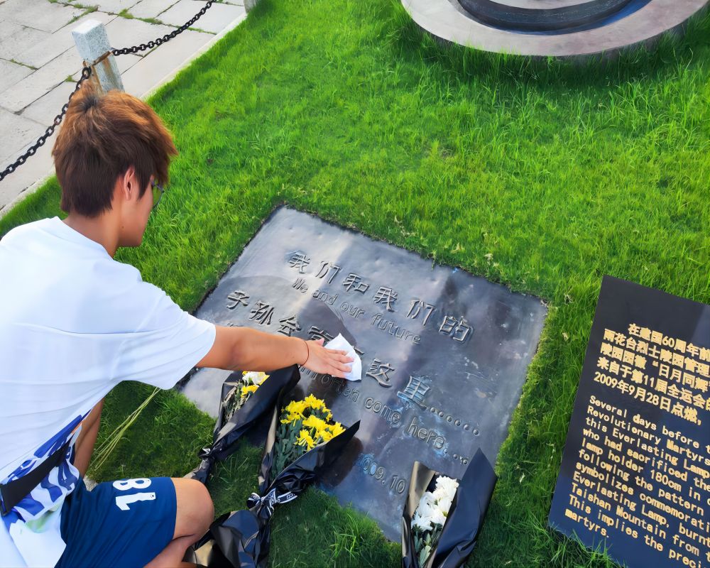 最后的地點是孫中山紀念館,一座仿清代喇嘛寺古典建筑使隊員們眼前一亮,剛入館便可看到豎有高2.6米的孫中山銅像,樓后有百米碑廊,其上刻有孫中山先生所著“三民主義”全文。在這里實踐隊員們看到民國時期中國的混沌,孫中山先生帶領著仁人志士開辟革命道路于混沌之中踽踽獨行,縱使經歷許多次的失敗,依舊秉持著初心,探索救國救民之道,立志解救全國人民于水火之中。