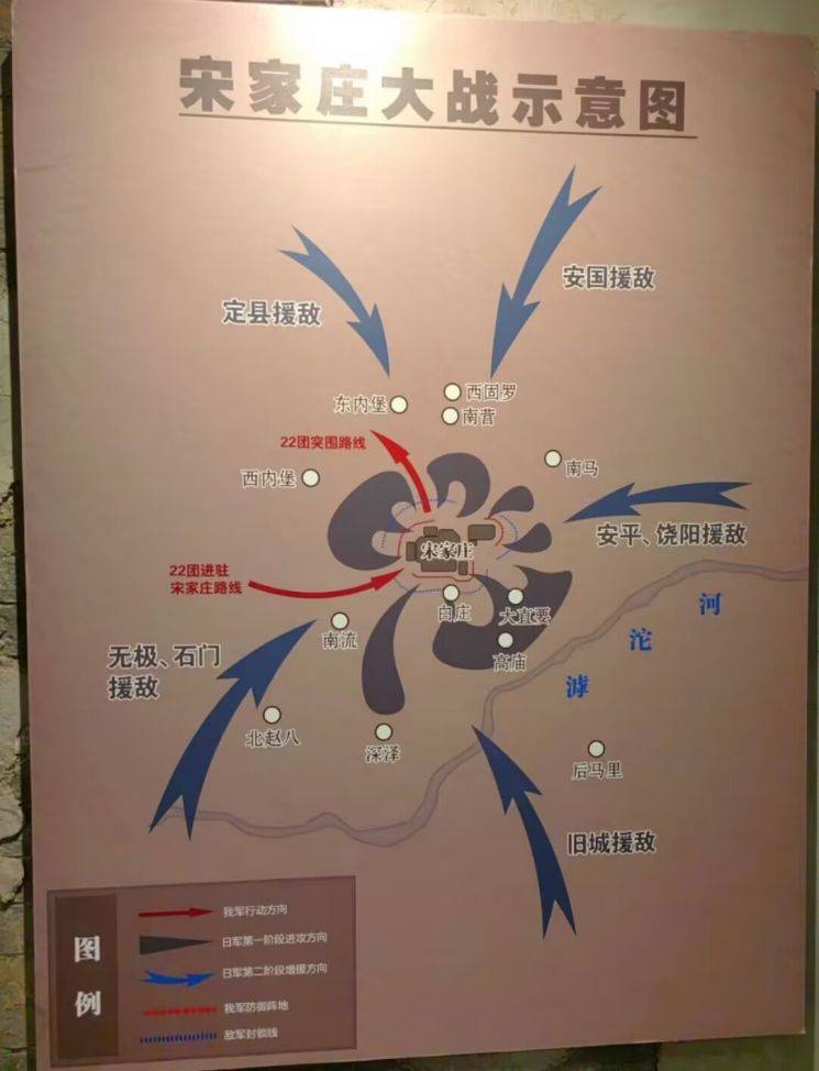 在冀中平原深澤縣的宋家莊村發生了華北平原上的宋莊之戰。這是一場典型的以少勝多戰役,經過17個多小時的鏖戰,我軍僅以73人的代價擊敗敵軍1200多人,并擊斃了日軍少將司令坂本,電影《沖破黎明前的黑暗》就是以此地為原型創作的。