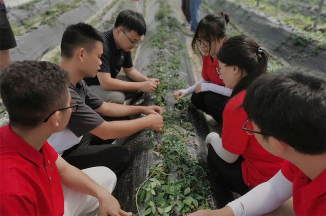 圖為實踐隊指導基地托管人員三葉青種植