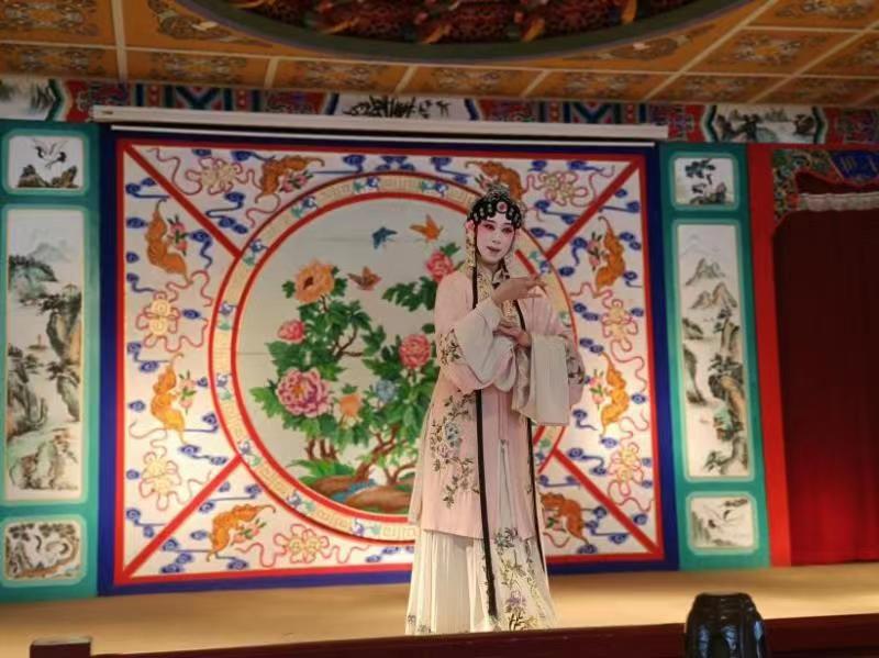 “原來姹紫嫣紅開遍,似這般都付與斷井頹垣。良辰美景奈何天,賞心樂事誰家院?朝飛暮卷,云霞翠軒;雨絲風片,煙波畫船。錦屏人忒看的這韶光賤!”團隊成員剛一落座,奏樂聲便響起,表演的正是節選《牡丹亭·驚夢·拾畫》。600年來,五尺高臺,那教人柔腸百轉、心靈震顫的曲詞,一字一句,唱出了風花雪月,道出了人生百態。動人心弦的配樂與臺上演員配合得天衣無縫,當杜麗娘從門簾入場那一剎,仿佛鶯囀鳥啼撲面而來。她的身段、步法、手勢引人入勝,恍惚間滿園的春色在眼前鋪開;她的嗓音清冽干凈,讓人驚嘆,如舞美般極其簡單,卻又恰恰暗合“一生愛好是天然”的人物形象。而柳夢梅游園時,腳下一滑的動作把一個癡書生演出了十分可愛;幾步身段更讓人不禁拍案叫絕。“臺上一分鐘,臺下十年功”這句話實實在在凝練于那舉重若輕的幾步之中。