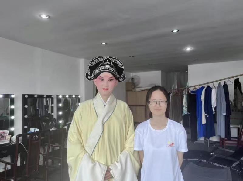 表演結束后,團隊成員來到后臺,采訪了兩位演員。其中,飾演杜麗娘的是鄒美玲,飾演柳夢梅的是黃朱雨,他們都是來自昆山當代昆劇院的優秀青年演員,表演功底深厚,甚至一舉一動都帶著昆曲那種不緊不慢,風流內蘊,給人一種人即是景,人即是物的感覺。