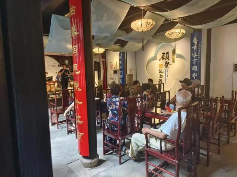 (圖為游客在顧堅紀念館欣賞昆曲評彈 查嘉麗 攝)