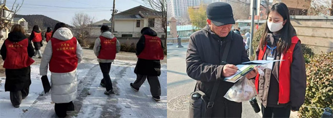 (圖為成員們出發進行調研) (圖為成員對業主發放問卷進行調研)