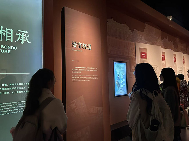 緣起閩臺承一脈,語傳兩岸載千情 1月27日下午,實踐隊走進中國閩臺緣博物館,以“同文同種、同根同源”為主線,通過展板了解到明清時期赴臺墾殖的民眾中,八成以上為閩南人,他們將閩南方言帶至臺灣,使其成為當地通行的地方方言。在語言互動展區,隊員們還親身體驗了方言的奇妙,通過答題小游戲學習閩南語日常詞匯的讀音與釋義。實踐隊成員在其中慢品閩臺的千年羈絆,切身領悟到兩岸之間的同源文化與同脈親情,在新與舊的對話里,邂逅最深情的“兩岸一家親”。