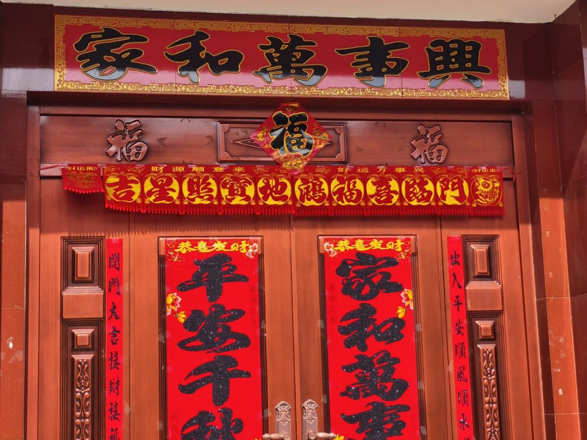 實踐隊員觀察發現,傳統彩色紙質過門箋主要見于老年家庭,年輕人多選擇全紅色一體式絨布過門箋。不少老年家庭在張貼時,數量與顏色排布未嚴格遵循傳統規制,有的按文字內容排布,有的隨心張貼,數量有五張、七張不等,部分家庭根據門體大小張貼十余張,傳統張貼規矩有所簡化。