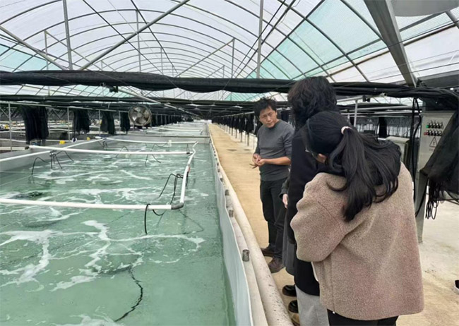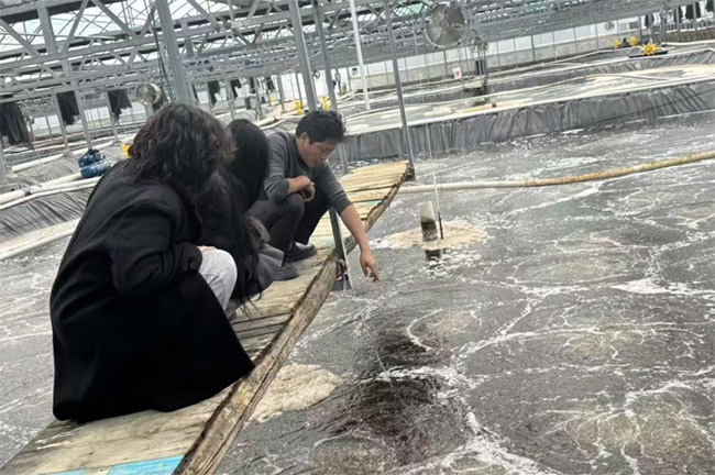 海晟水產有限公司:感受企業轉型實踐 隨后,實踐隊走訪東山縣海晟水產有限公司,了解企業在海水養殖和生產升級方面的實踐情況。該企業主要養殖南美白對蝦,企業負責人李睿介紹了養殖設施改造后的生產變化、產品品質提升以及市場銷售情況,分享了在政策支持下推進技術更新的實際經驗;并帶領隊員參觀了南美白對蝦從幼蝦到成蝦的不同養殖環境。隊員們通過實地觀察和交流,進一步理解了海洋產業轉型升級在企業層面的具體體現。