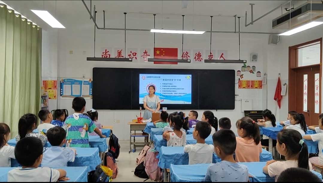 安全宣講防禍患,家校聯手保平安。“安全一夏”實踐隊走進德州市德城區王莊小學進行“珍愛生命,預防溺水”安全教育宣講。實踐隊成員通過生動有趣的PPT、播放易于接受的動畫等方式講述了防溺水的兒童趣味知識,借助有獎安全知識競答、你畫我猜等方式激發孩子們了解防溺水相關知識的興趣。實踐隊成員拋出問題:“如果在游泳過程中突然抽筋,你會怎么做呢?”孩子們紛紛舉起小手踴躍發言:“大聲呼救”“先調整好呼吸,再進行拉伸”……小朋友們帶著好奇心,推進了防溺安全宣講活動的順利開展。通過安全教育,孩子們逐漸明辨了何為危險水域,也對防溺水“六不”的內容有了自己的認識。在安全教育結尾之時,實踐隊員提醒家長在暑假期間應當密切關注孩子的活動去向,時常向孩子普及安全知識,切實履行監護責任,及時阻止孩子的危險行為,把溺水事故扼殺在搖籃。