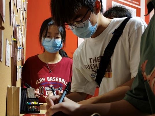 圖為實踐小分隊在留言板上留言