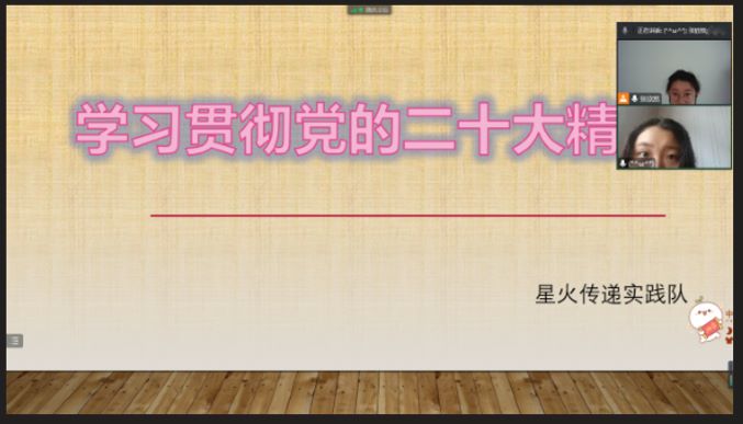 圖為實踐隊隊員開展線上會議向青年朋友介紹黨的二十大。中國青年網通訊員 張欣然 供圖