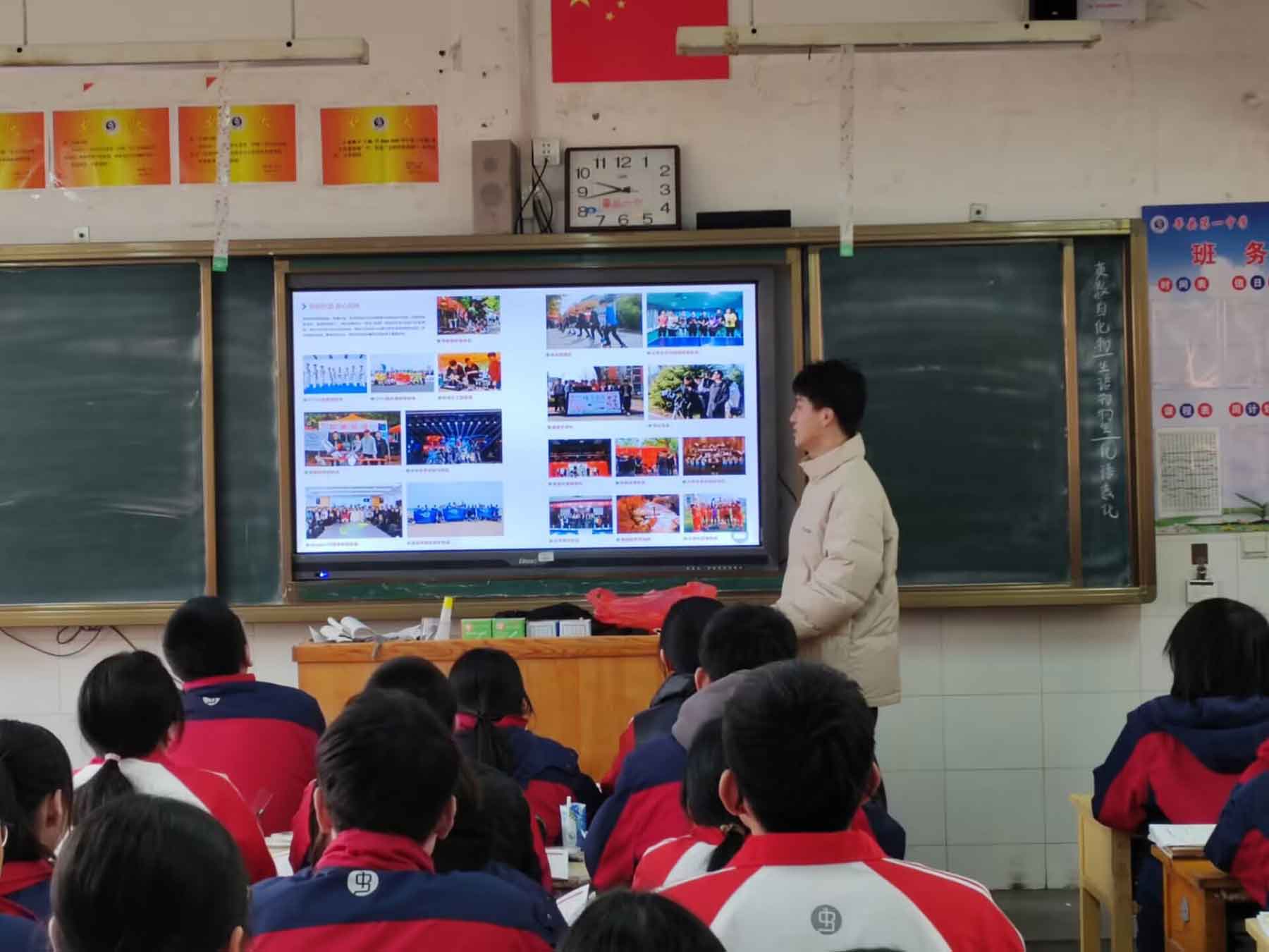 宣講后,我們又進行了互動環節,這是活動的尾聲,我們在一個輕松愉快的氛圍下與學弟學妹們交流學習經驗,之后與老師交流了大學生活,老師給了我們更深遠的鼓勵,希望我們在大學階段繼續好好學習,爭取為高中母校和大學學校爭光;顒又链藞A滿結束。