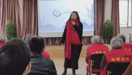 接著,蘆墟山歌非遺傳承人張鶯女士向大家講述了自己與蘆墟山歌的故事:“我與山歌的緣分是從我媽媽那里開始的,她在當時的省農民運動會上演唱了響山歌。而我正式學習山歌是在蘆墟實驗小學,學習由楊敬偉老師創作的少兒蘆墟風情歌。”說罷,張鶯女士現場演唱了幾首響山歌和風情歌。隨著陣陣歌聲在敬老院里傳播開來,大家感受到了蘆墟地區獨特的風土人情。唱畢,場上響起了熱烈的掌聲。張鶯女士表達了對于“回音計劃”實踐團隊的殷切期望:“山歌在我們這里是一個非常重要的文化現象,它的歌詞體現了老百姓的智慧,它的旋律也是具有地方特色的。希望你們能夠將這一項有意義的事業做下去!”活動的最后,“回音計劃”實踐團隊與非遺文化傳承人、老人們合唱《團結就是力量》,老人們打著節拍,唱歌而樂,唱出了團結向上的精氣神。蘆墟山歌的傳承與創新也需團結,需要學生團體、社會組織、政府機構多方合力,共同唱響蘆墟山歌的時代之音。