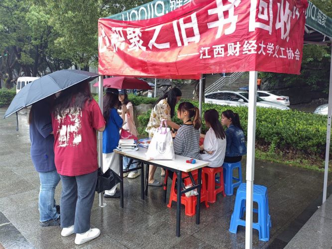 隨著現代科技的發展,越來越學生更青睞電子書籍,大部分的紙質書籍被荒廢甚至丟棄。對此,江西財經大學義工協會愛心積聚部與校外環保公益組織攜手于5月21日分別在麥廬園校區十二生肖廣場和蛟橋北區大禮堂門口舉辦面向全校師生的“愛心積聚,舊衣回收”公益回收活動。本次活動旨在動員同學們捐出閑置書籍,合理利用資源,弘揚愛心奉獻精神,助力環保事業。