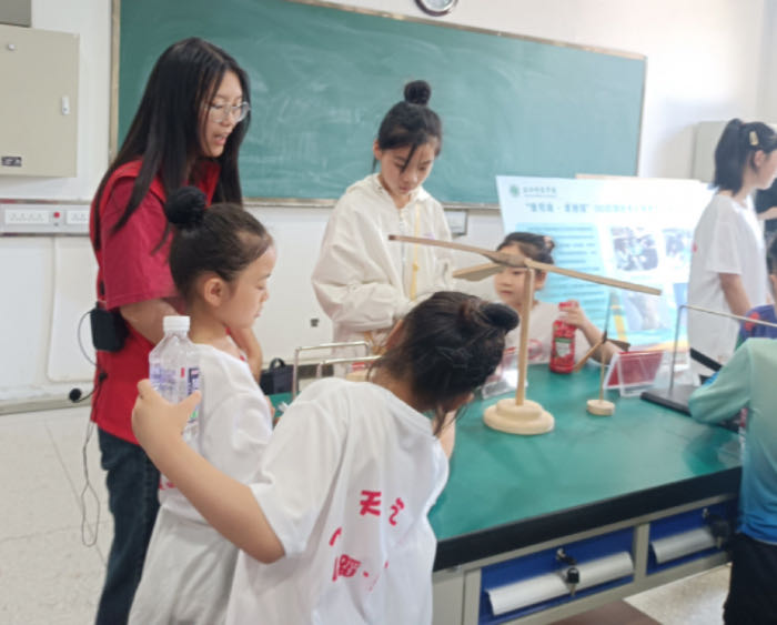 在月明湖畔,我們學院的酒管志愿者為孩子們詳細講解了湖畔的各種水生植物及其生態環境,孩子們十分認真地傾聽。而在洛師學院內的三彩藝術體驗館內,孩子們興致勃勃地聆聽著專業講解員講解著洛陽唐三彩的歷史,同時通過觀察唐三彩的顏色和形狀來跟現實生活中的美學色彩和動物進行對比,展現了他們的創造力與想象力。而在物理小實驗上,學生們表現出非常強烈的求知欲。來到學院的龍門書院,學生們觀看了漢服表演,體驗到了中國古代服裝的豐富多彩。隨后,學生在志愿者的帶領下來到了洛師校園內的足球網進行素質拓展活動:球拍接力、跳遠、跳大繩……學生們非常激動興奮,鍛煉了他們身體的同時也收獲了快樂。最后,在洛師志愿者的帶領下,學生們含淚向洛師告別,登上了返程的車。
