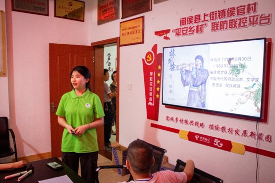 (圖為侯官村委會(huì)代表對(duì)支教活動(dòng)進(jìn)行現(xiàn)場(chǎng)直播 通訊員蔡思奇攝)