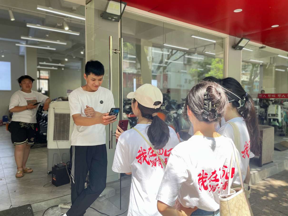 圖為實踐隊在招寶山街道發放線上調查問卷。