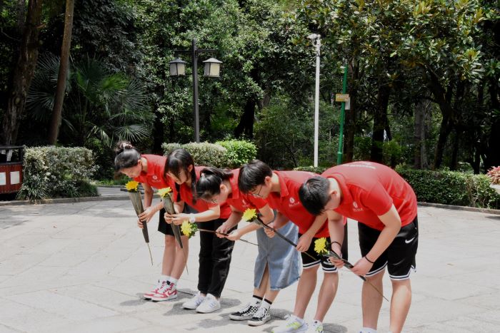 圖2:隊員們在陵園前深深鞠躬