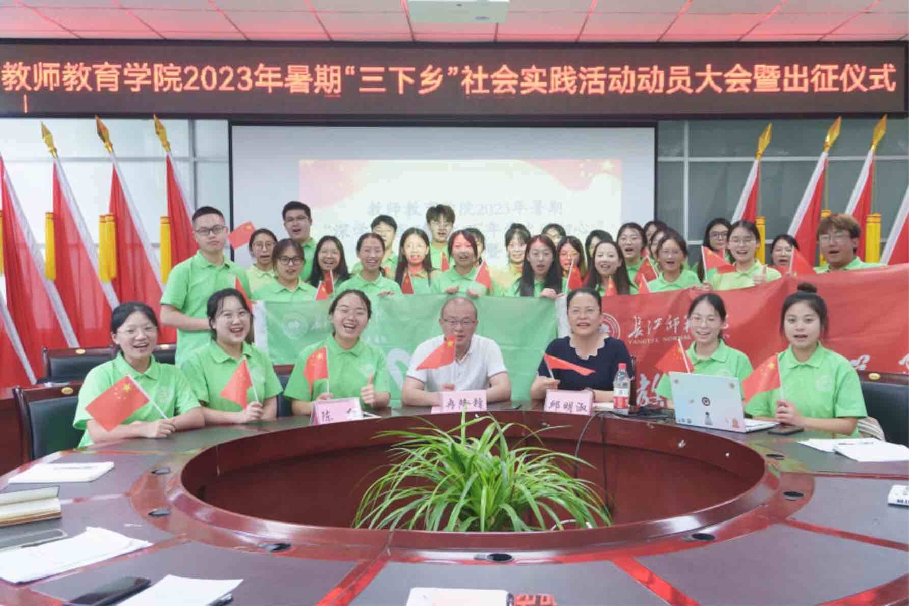 為增強新時代大學生社會實踐活動實效,引領廣大青年深入鄉村振興第一線,強化全科學子投身鄉村教育的責任感、榮譽感、自豪感,7月7日13時,教師教育學院于崇仁樓408會議室舉行了2023年暑期“三下鄉”社會實踐活動動員大會暨出征儀式。黨委書記兼院長冉隆鋒,黨委副書記邱明淑,輔導員陳紅及三下鄉全體志愿者參加此次會議。