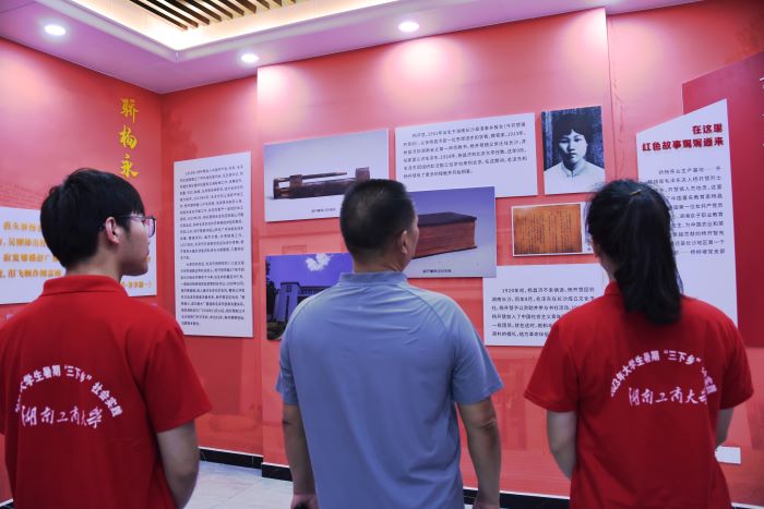 “一碗驕楊茶,留一段佳話”。驕楊茶業(yè)余男君總經(jīng)理先是熱情地給團隊成員每人泡了一杯驕楊綠茶,茶香泗溢,唇齒留香。隨后他帶領(lǐng)團隊成員參觀了茶旅文化展廳,使隊員們了解到驕楊茶業(yè)充分利用開慧鎮(zhèn)紅色資源,積極促進茶文旅融合,推動鄉(xiāng)村振興。