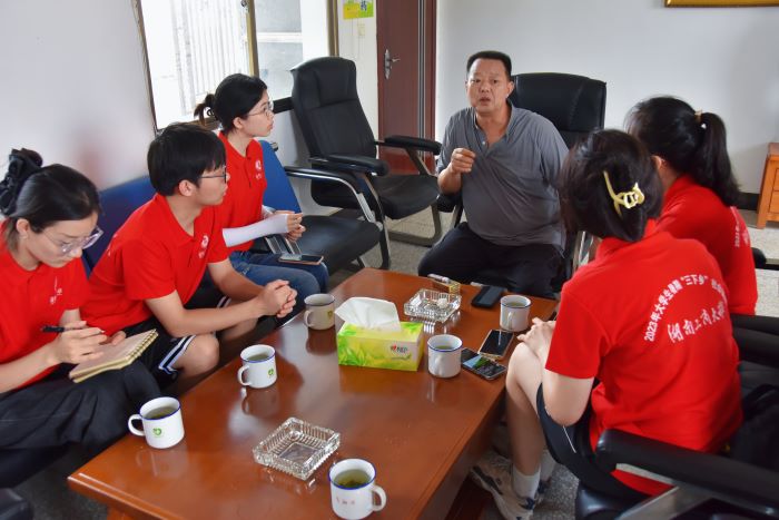 圖4:余總經(jīng)理與隊員們交流驕楊茶產(chǎn)業(yè)的發(fā)展