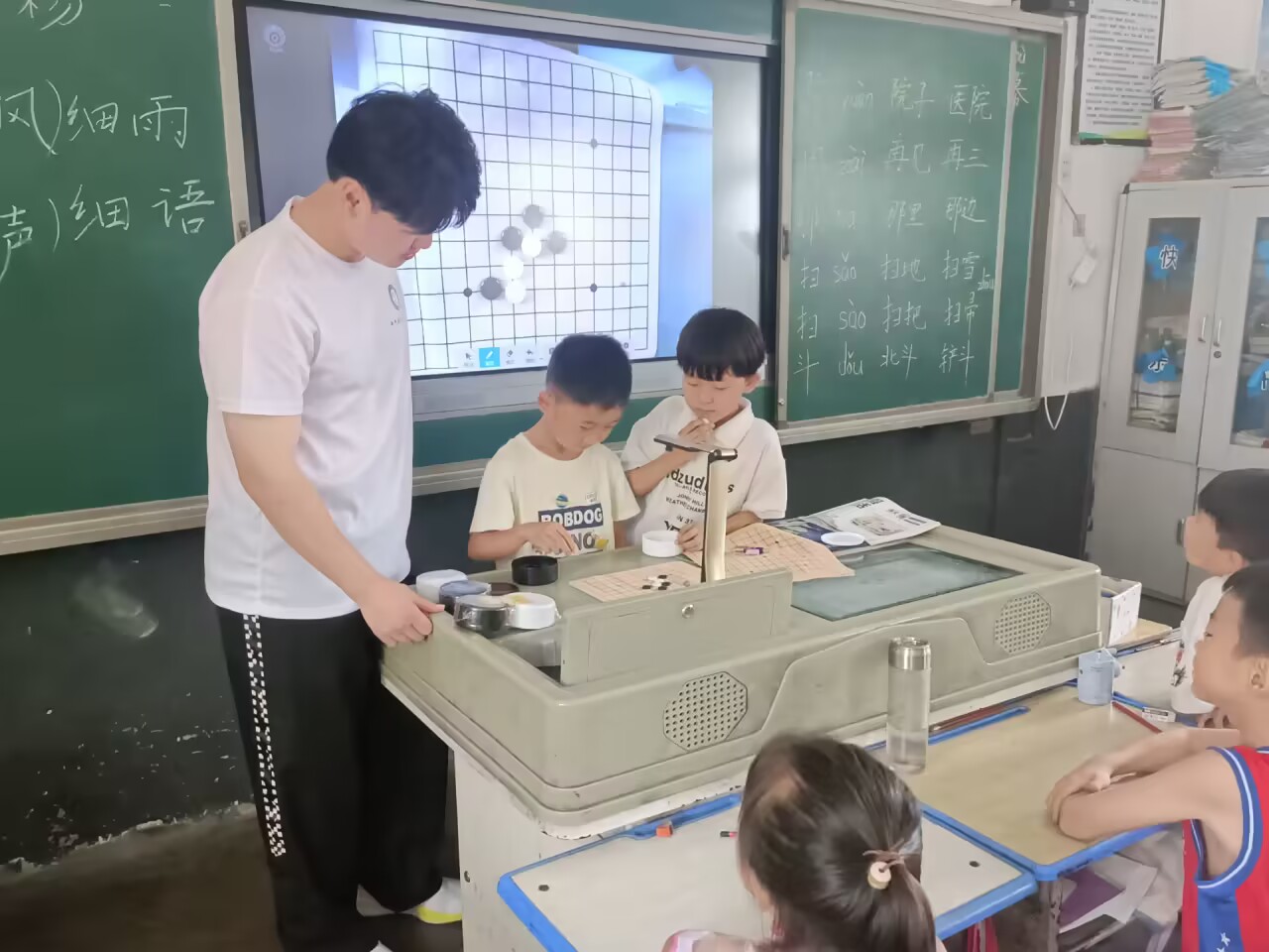 第一天授課結束后,志愿者團隊與廟岔鎮第一小學教師學生合影拍照.