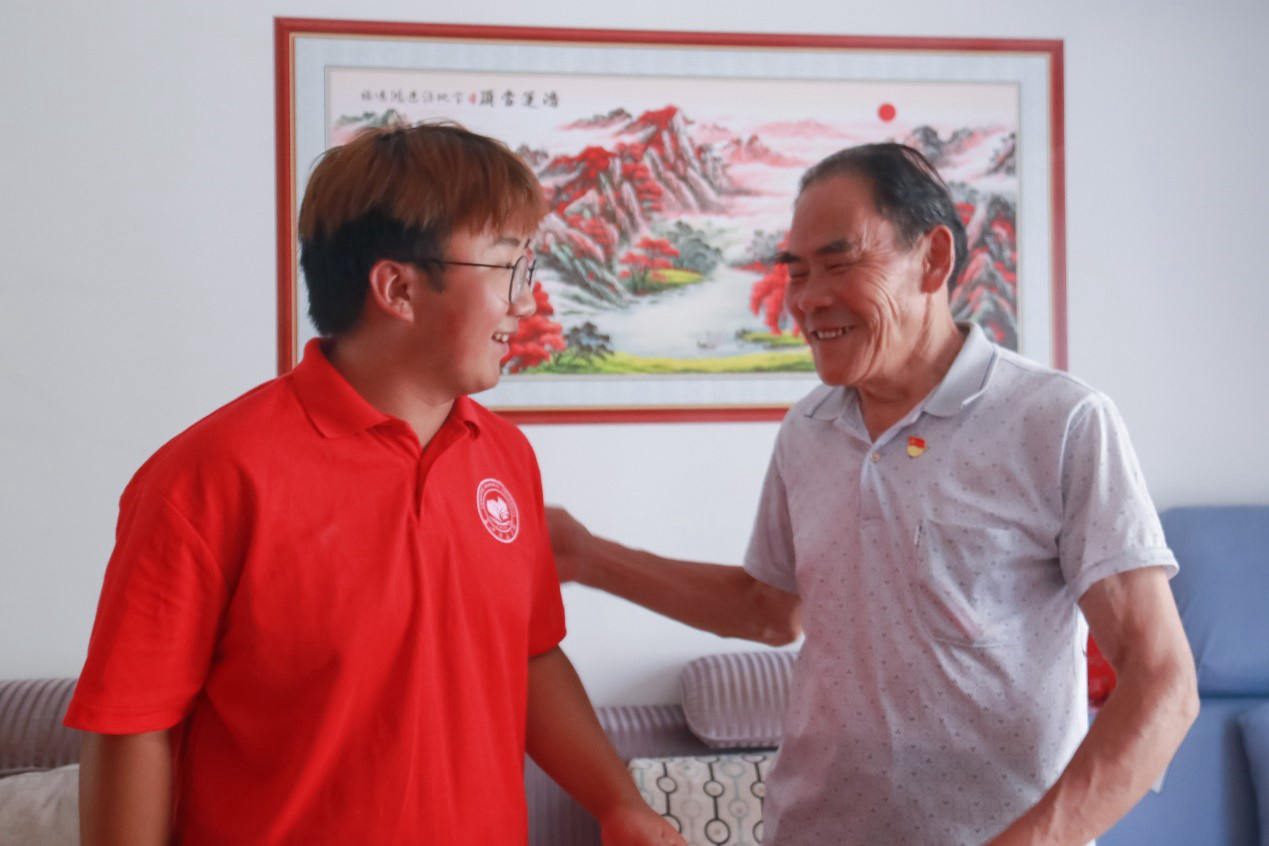 炎炎夏日擋不住志愿者們的熱情,懷揣著對退役軍人崇高的敬意,清晨,志愿者們與老兵親切交談,仔細詢問了家庭情況和生活中遇到的問題,關心著老人的身體狀況,聆聽著年輕時的英雄事跡。81歲的楊代崇曾在東北當兵五年,退役后在大順鎮當了十多年的隊長,他為國家奉獻了熱烈的青春,做出了巨大的貢獻!然而,他卻從不抱怨,能吃苦,肯奮斗,歲月只給他留下了淺淺的皺紋。
