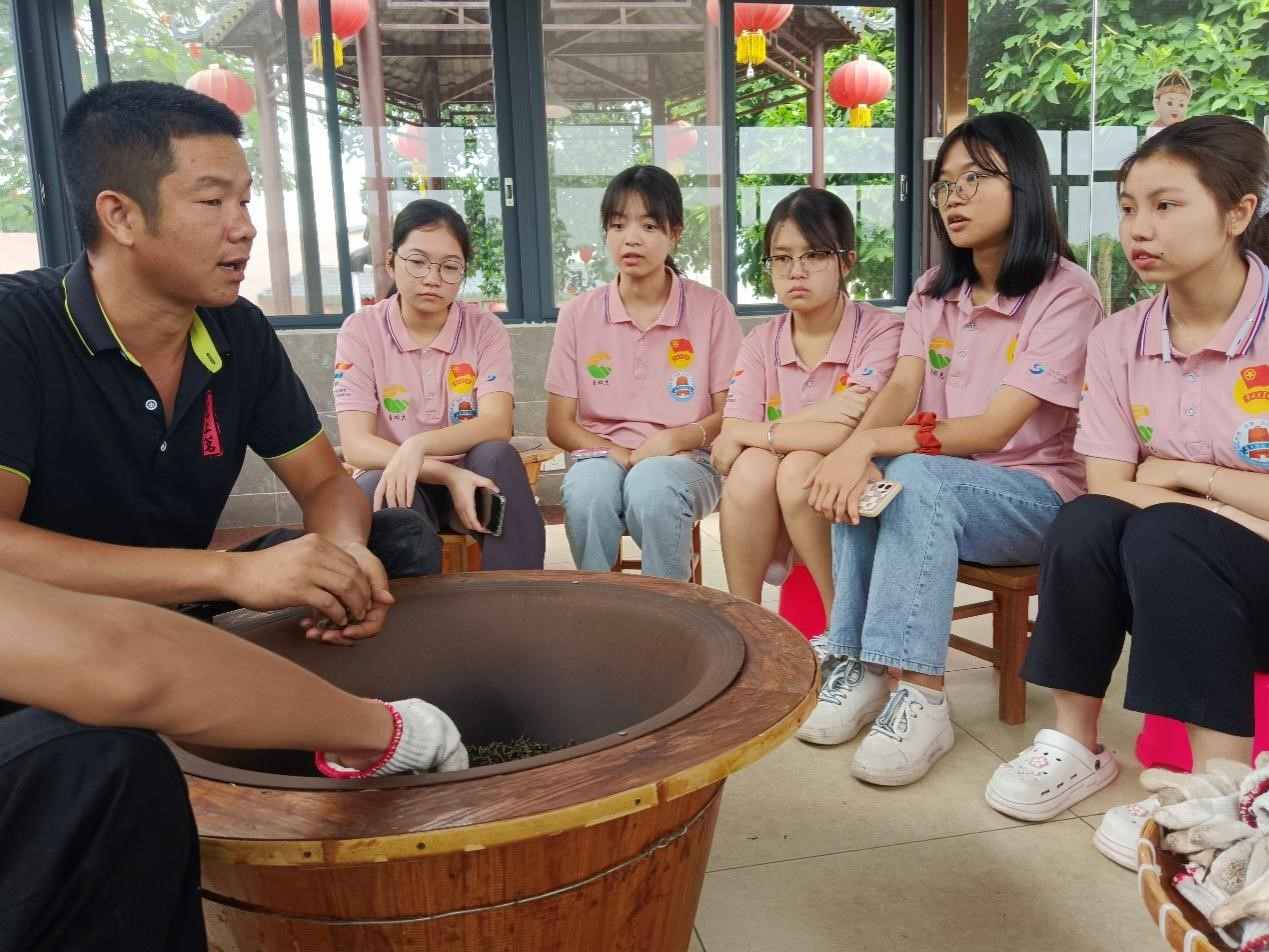 圖為實踐隊隊員們在向當地茶園專家學習如何炒茶 唐偉俊 攝