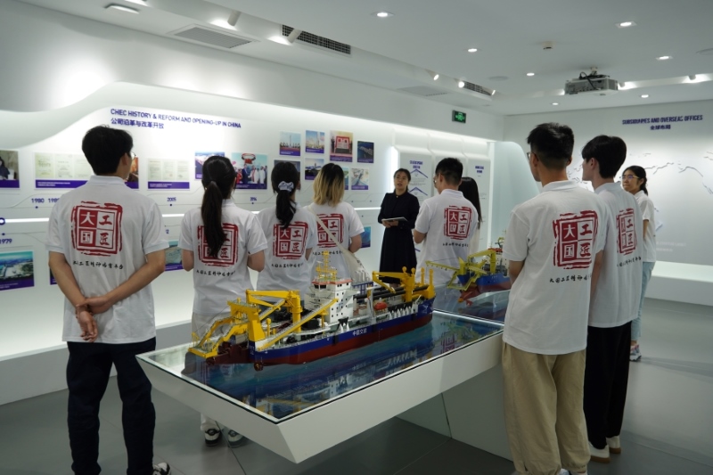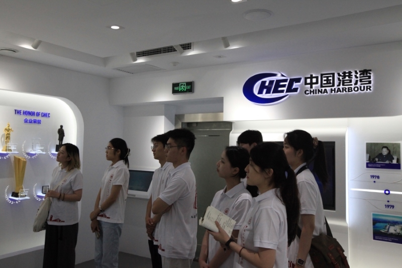 實踐團實地感受中國港灣的建設歷史和發展歷程,感悟“世界視野”。中國港灣前身是成立于1980年的中國港灣工程公司,積極響應改革開放政策,經過四十多年的戰略升級及跨越發展,中國港灣在國家對外港口、船塢、船廠、工業民用建筑等工程建設等方面做出卓越貢獻。