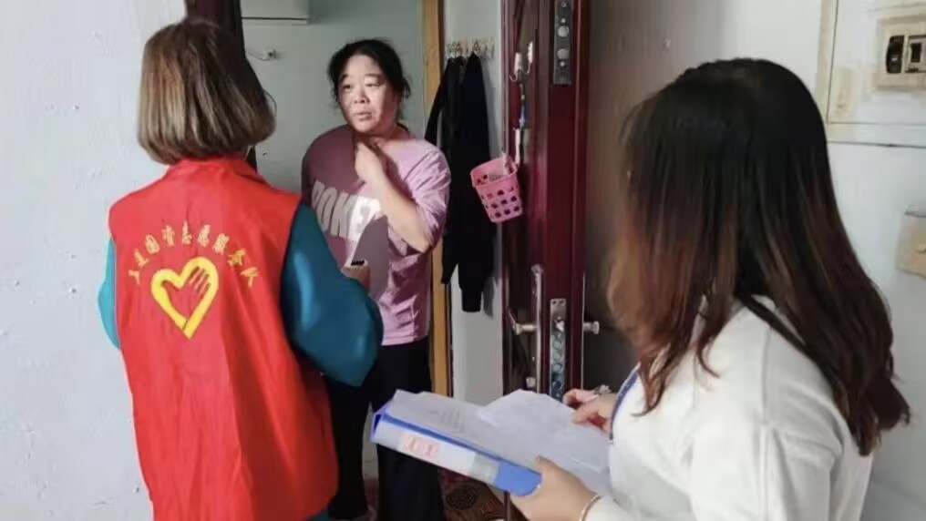 圖為實踐隊員來到居民家中,向居民科普安全知識。