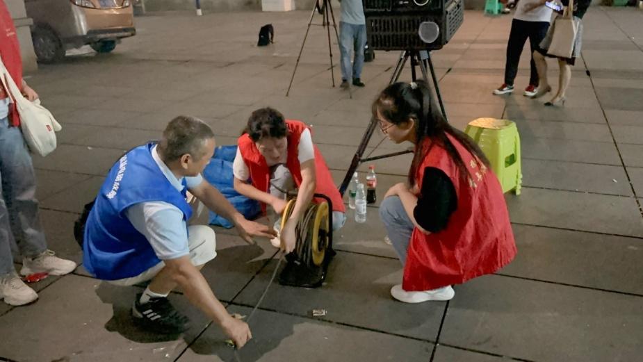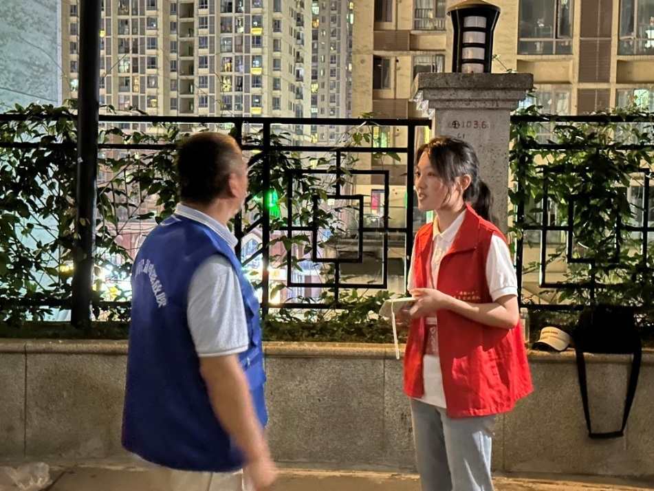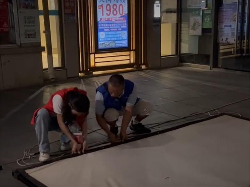 有別于以往放映活動中的歷史年代片,本次活動放映的是今年4月上映的劇情動作片《長空之王》。此外,實踐團成員們還了解到,當地室外放映機內存卡容量大、資源新,不僅可以同時儲存20多部影片,而且都是當年上映的新電影,讓社區居民們與城市同頻共享影視文化。隨著電影進入高潮,現場的嬉鬧聲也逐漸褪去,現場的觀眾們時而沉浸于戰機翱翔呼嘯于九天之外的視聽盛宴;時而激動于試飛員擔當奉獻于大漠之中的熱血沸騰。到影片尾聲時更是淚點與笑點齊飛,“我已無法返航,你們繼續前行!”留下的不僅是觀眾們無法克制的淚水,更是中國試飛員們不畏艱險勇于挑戰、追求卓越甘于奉獻的精神沖擊。